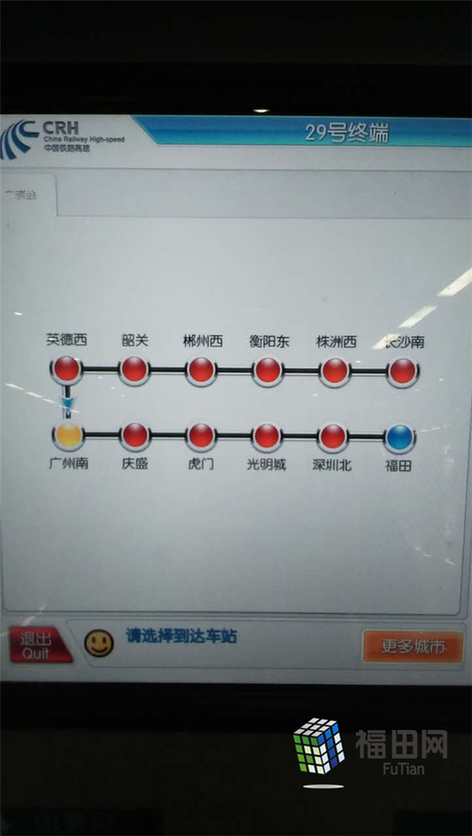 福田站只出售本站出发的车票,只有广州和长沙两个方向