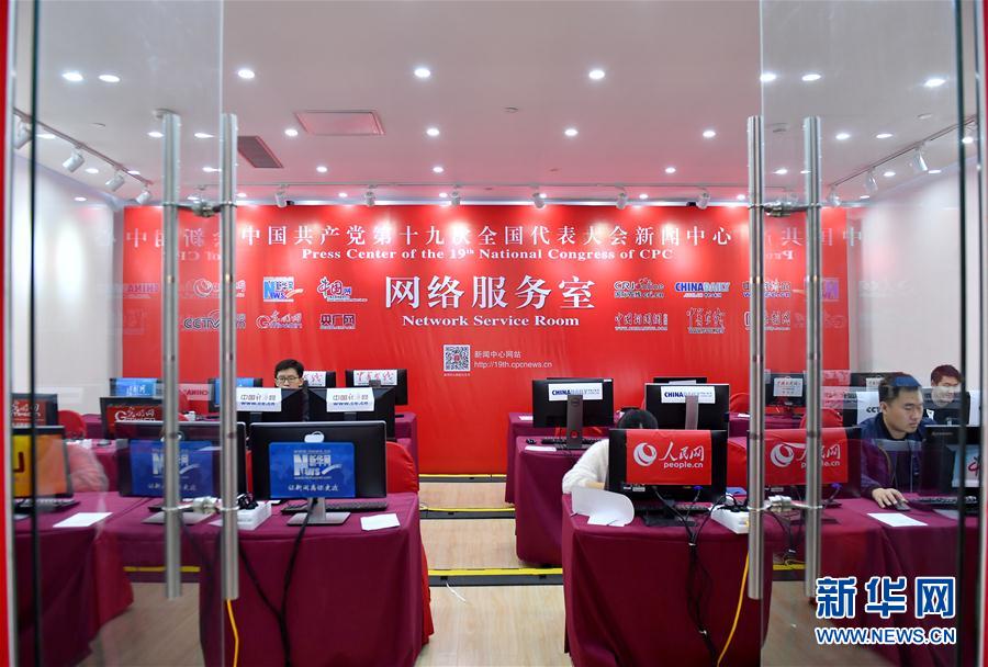 这是十九大新闻中心内的网络服务室(10月11日摄)。