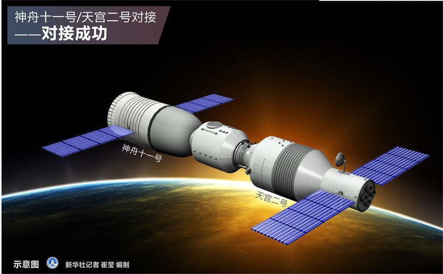 资料图表:神舟十一号/天宫二号对接——对接成功 新华社记者 崔莹 编制