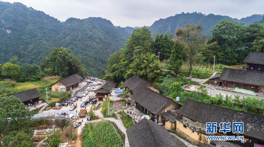 俯瞰湖南湘西土家族苗族自治州花垣县双龙镇十八洞村(2017年9月21日摄)。新华社记者 王天聪 摄
