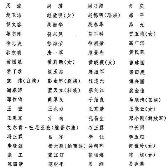 马正武 马伟明 马国强(回族) 王宁(福建) 王永康 王伟中 王旭东 王秀斌 王君正 王春宁 冯建华 曲木史哈(彝族)任学锋 刘宁 刘发庆 刘晓凯(苗族) 严金海(藏族) 严植婵(女) 李群 李景浩(朝鲜族) 杨宁(女,白族) 杨伟 肖莺子(女,壮族)吴强(侗族) 吴存荣 吴杰明 吴胜华(布依族) 邹铭 沈春耀 宋国权 张广军 张玉卓 张志芬 张振中 张敬华 陈刚 陈一新 陈海波 林少春 杭义洪 欧阳晓平 罗布顿珠(藏族) 罗红江(傣族) 罗清宇 金东寒 周波 周琪 周乃翔 官庆 赵玉沛 赵爱明(女)赵德明(瑶族) 郝平 胡文容 胡衡华 段春华 禹光 姜志刚 贺东风 贺军科 贾玉梅(女) 徐忠波 徐海荣 徐新荣 高广滨 郭东明 唐一军 唐登杰 黄民强 黄国显 黄莉新(女) 黄晓薇(女) 曹建国 常丁求 崔玉忠 麻振军 梁田庚 寇伟(白族) 彭金辉(彝族)程连元 傅兴国 谢春涛 蓝天立(壮族) 蔡剑江 裴金佳 谭作钧 戴厚良 于绍良 马顺清(回族) 王宏 王兆力 王京清 王晓云(女)王恩东 方向 孔昌生 邓小刚(解放军) 艾尔肯·吐尼亚孜(维吾尔族) 石正露 申长雨 冯正霖 吕军 李佳 李玉超 李晓波 杨光跃(纳西族) 吴朝晖 何雅玲(女) 张工 张江汀 张福海 陈旭(女) 陈四清 范锐平 易纲 易会满 易炼红 赵欢 赵一德 钟登华 信长星 施小琳(女) 钱智民 郭明义 唐华俊 唐良智 黄志贤 葛慧君(女) 景俊海 程丽华(女) 傅自应 焦彦龙 雷凡培 慎海雄 蔡松涛 颜晓东 潘功胜 马廷礼(回族) 王海 王曦 王印芳 王艳玲(女) 毛万春 乌兰(女,蒙古族) 尹弘 田国立 乐玉成 刘石泉 孙大伟 阴和俊 陈青(女) 胡昌升 曹淑敏(女) 缪建民 魏钢 王炯 王文涛 毛伟明 邓小刚(四川) 任洪斌 李静(女) 李应红 吴晓光 宋鱼水(女) 庹震 潘岳 丁业现 王莉霞(女,蒙古族) 宁吉喆 杨金成 舒庆(满族) 姚增科