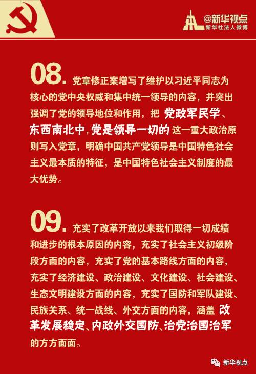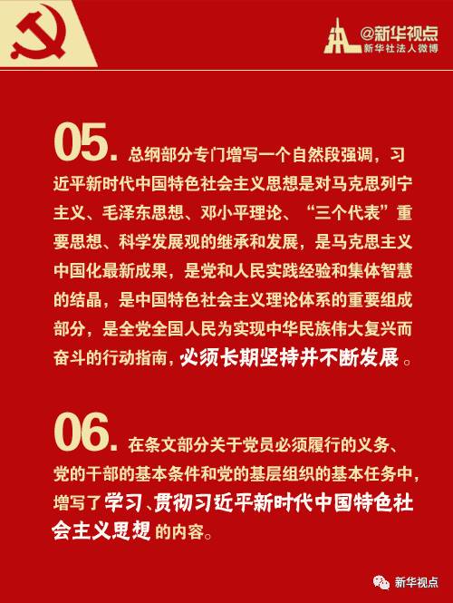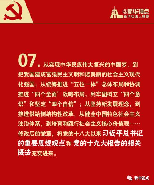 党的十九大通过的党章修正案,共修改107处,其中总纲部分修改58处,条文部分修改49处。重点修改、增加了哪些说法?戳图学习!