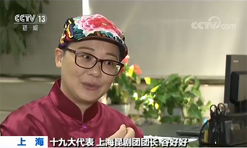 十九大代表谷好好是上海昆剧团的团长,一回到团里,她就组织演职人员一起学习十九大报告精神。