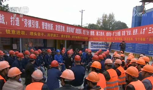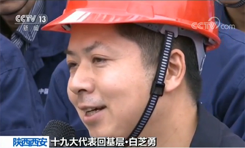 在中铁一局西安地铁四号线项目部施工现场,十九大代表、中铁一局五公司高级测量技师白芝勇正在为工友们做十九大报告精神宣讲。十九大报告中提出要弘扬工匠精神和劳模精神,白芝勇告诉工友们,在建设工程中,要从一点一滴做起,钉好每一颗钉子、扎好每一根钢筋,打造优质工程、精品工程。
