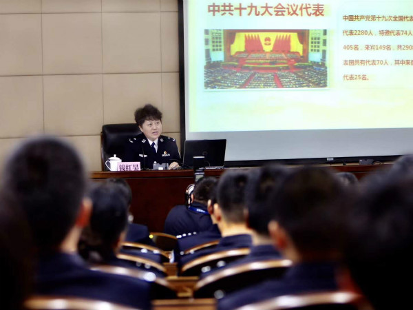 课堂上,钱红昊回顾了赴京参会十一天的经历,她认为,这是代表履职,也是一堂党课,一次深刻的马克思主义教育。“自己对党的事业,对祖国和人民的未来更加自豪自信,对共产党员的使命担当更加清晰坚定。”钱红昊向学警们介绍:会场里代表坐位不放席卡,讲台不摆放鲜花,代表开会时,门厅的大灯就都关了,点点滴滴细节透出震撼人心的力量。
