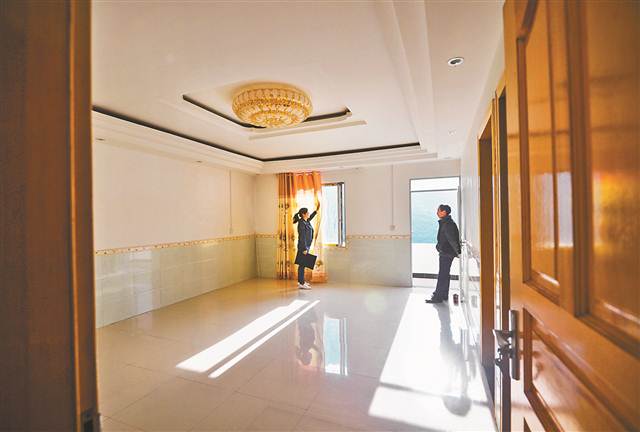11月1日,严克美来到贫困户丁德元家走访,了解农家乐的装修进度。