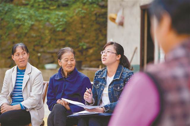 11月1日,一大早,严克美(右一)和她的同事开始走村进户,收集村情民意。