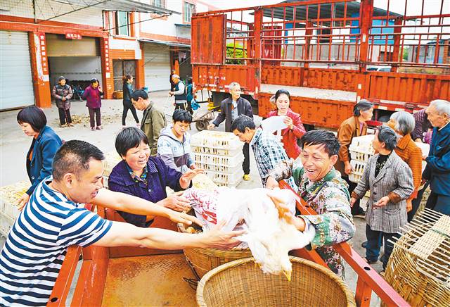 重庆市永川区残联为该区何梗镇花园村、五间镇合兴村残疾农户送去鸡苗和饲料。(本报资料图片) 通讯员 陈科儒 摄