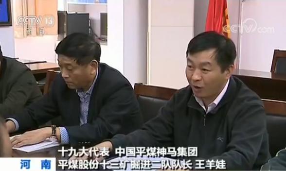 十九大代表 中国平煤神马集团平煤股份十三矿掘进二队队长王羊娃:“党的十九大报告说了一段话,要弘扬劳模精神和工匠精神,营造劳动光荣的社会风尚和精益求精的敬业风气,对我们一线工人来说,是一种尊重,也是一种认可。”