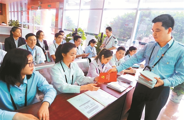 深圳新闻网讯 连日来,深圳按照中央关于认真学习宣传贯彻党的十九大精神的决定,充分利用各种宣传形式和手段,采取人民群众喜闻乐见的形式,推动党的十九大精神进企业、进机关、进校园、进社区、进网站,在全市上下兴起学习宣传贯彻党的十九大精神的热潮。图为宝安区西乡卫生监督所组织党员干部职工学习贯彻十九大精神。(深圳特区报记者 刘钢 摄)