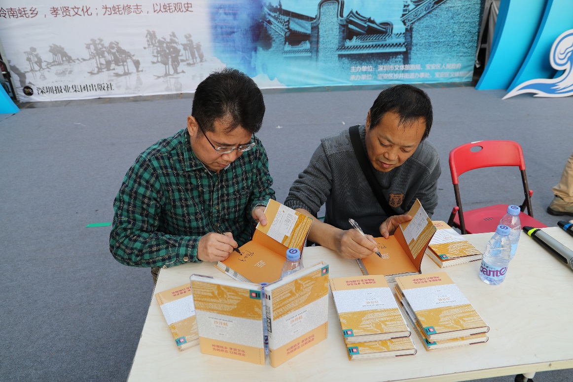 宝安区传统文化协会副会长、宝安区民间文艺家协会副会长、副研究馆员程建,深圳报业集团出版社副社长、教育学博士孔令军到场助阵。此次新书发布会为第十四届宝安沙井金蚝美食文化节各色文化活动中的一环,让人们在吃着沙井蚝的同时了解沙井蚝及沙井的历史与故事。