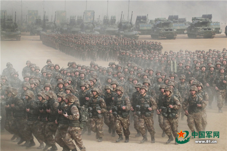1月3日上午,中央军委隆重举行2018年开训动员大会,中共中央总书记、国家主席、中央军委主席习近平向全军发布训令。这是动员大会主会场部队受领训令后展开训练。
