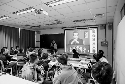 南开大学的学生邀请来自俄罗斯、罗马尼亚、哈萨克斯坦、埃及、塞尔维亚、亚美尼亚、意大利、韩国、泰国等十几个国家的留学生一道聚焦十九大,“共话中国与世界”。