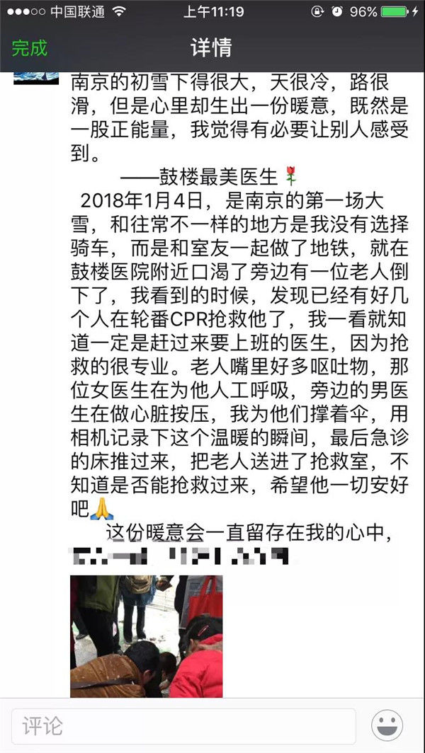 在南京,有一位在雪地摔倒心跳呼吸骤停的老人,做了一台没有家属签字就开展的手术,还有一位说出“所有责任我来承担”的医生。