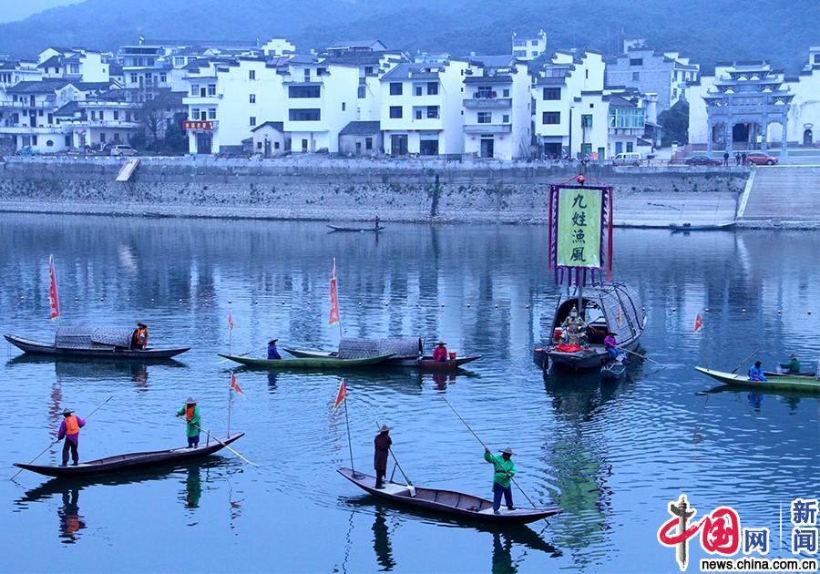 2018年1月19日,安徽省黄山市歙县的“新安江山水画廊”,“九姓捕鱼”农家渔业表演是当地旅游的一项重要节目。中国网记者董小迪摄