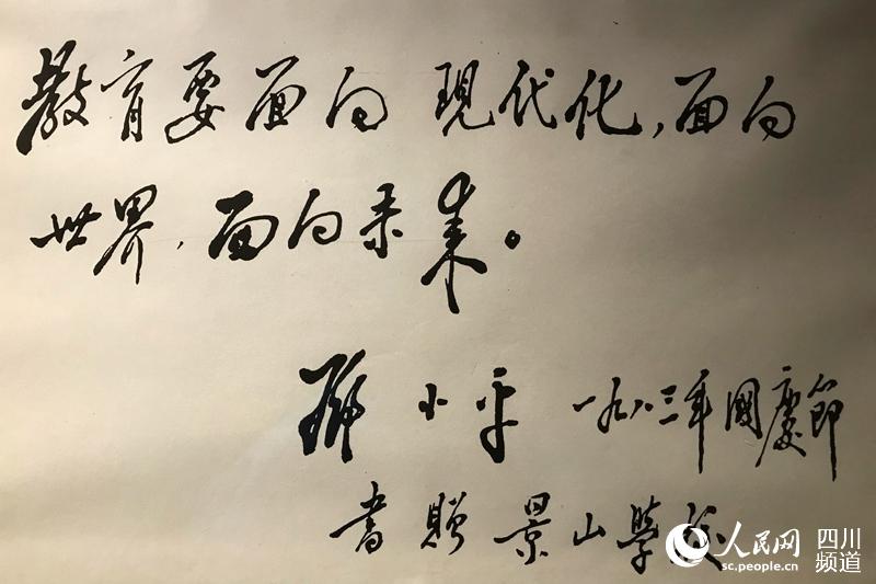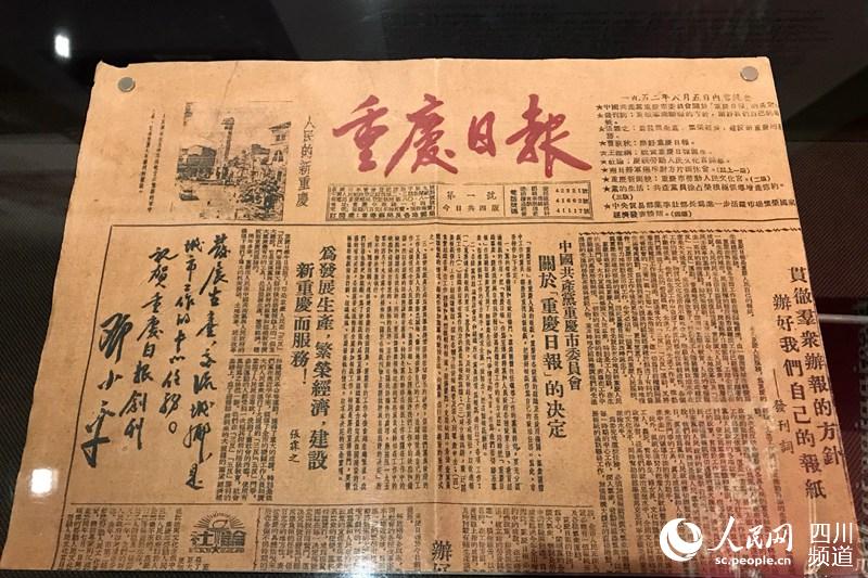 邓小平为《重庆日报》创刊号题词。(朱虹 摄)