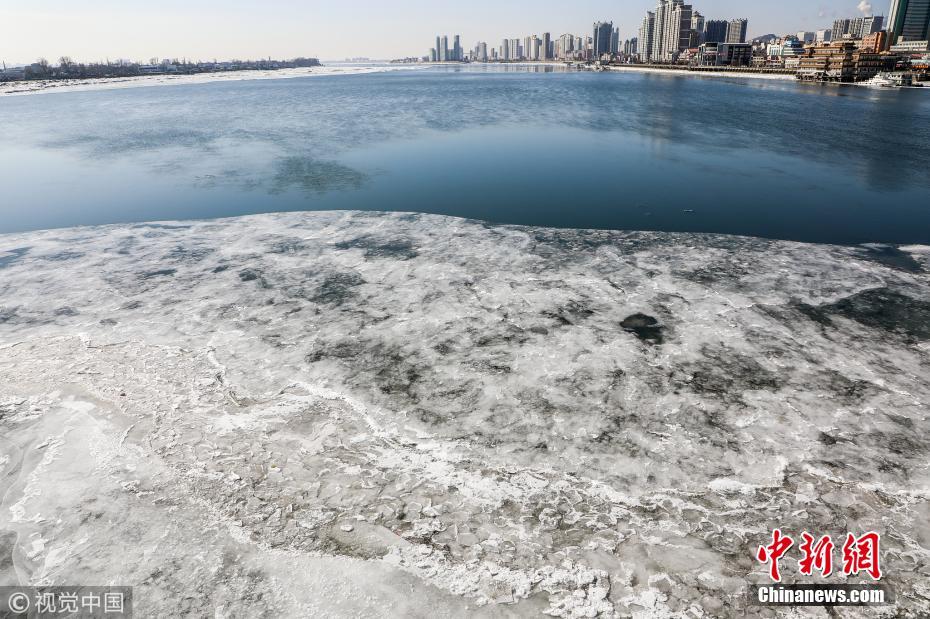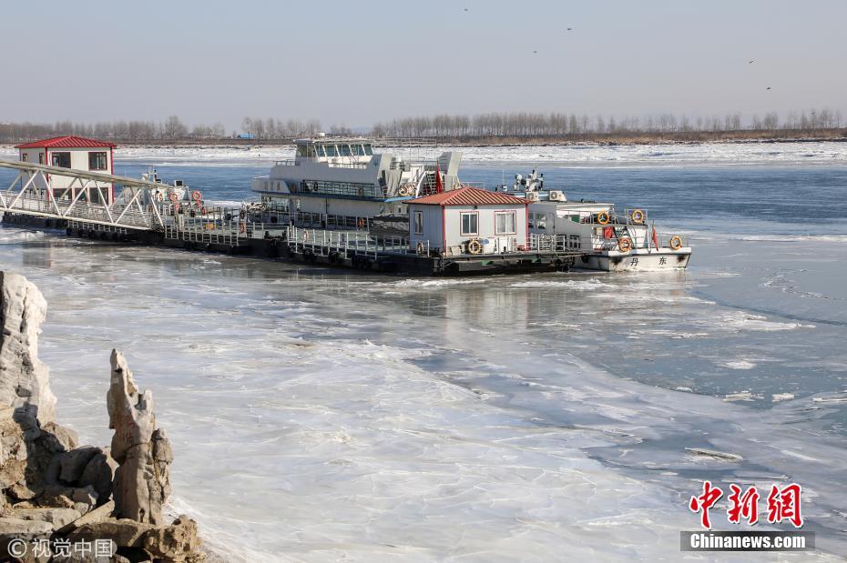 据了解,因受黄海潮汐影响,鸭绿江下游丹东市区至入海口一段,很少有冬季大面积结冰的现象。 图片来源:视觉中国