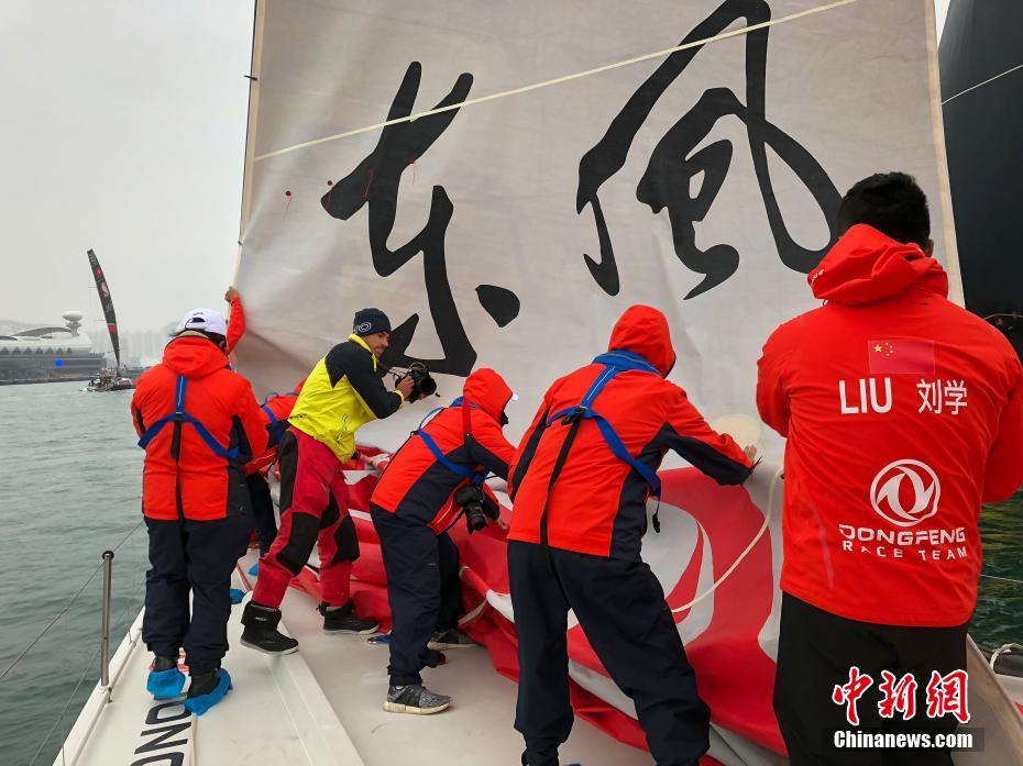 1月29日,沃尔沃环球帆船赛中国赛队在香港启德邮轮码头举办“东风号”主题活动。图为来宾在船员指导下收起“东风号”帆船上的船帆。2017-18赛季沃尔沃环球帆船赛第四赛段已结束,7支船队陆续抵达中国香港站,中国赛队“东风队”不负众望斩获亚军,成为本赛季唯一一支连续四次登上领奖台的船队。中新社记者谢光磊 摄