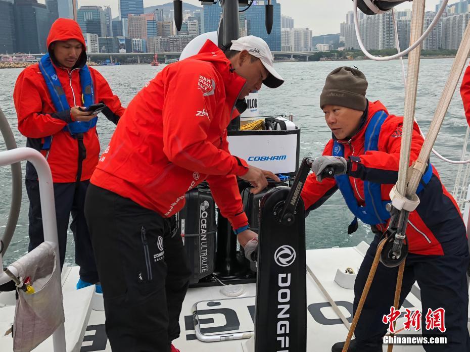 1月29日,沃尔沃环球帆船赛中国赛队在香港启德邮轮码头举办“东风号”主题活动。图为来宾在船员指导下体验“东风号”帆船。2017-18赛季沃尔沃环球帆船赛第四赛段已结束,7支船队陆续抵达中国香港站,中国赛队“东风队”不负众望斩获亚军,成为本赛季唯一一支连续四次登上领奖台的船队。中新社记者谢光磊 摄