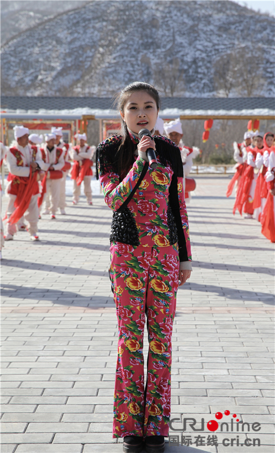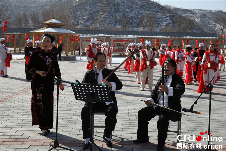 1月17日,记者在延安市安塞区冯家营民俗文化村看到,伴随着雄浑的锣鼓点和高亢的唢呐声,人群对面的黄土坡上现出一些腰鼓艺人,先是3、4个,接着便如红白两色的瀑布般沿山坡坡面倾斜而下,顷刻填满整个山坡。他们敲打着腰鼓又蹦又跳,鼓槌上的红丝带被挥舞得上下翻飞,展现的是村里人庆丰收,迎佳节的喜庆场面。其间,一名6岁男孩还被大人们簇拥着独舞了一段,赢得了如雷般的掌声。