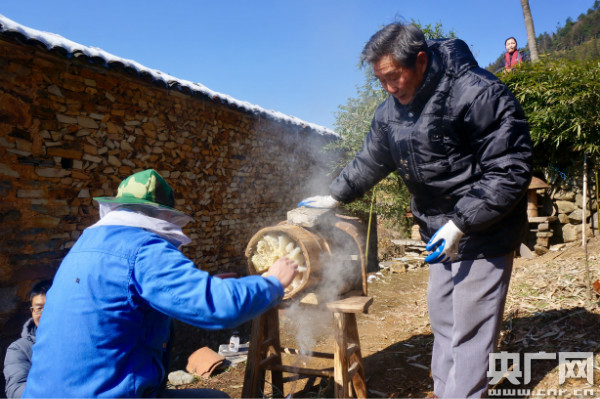 农民收蜂蜜 央广网记者傅炜如 摄