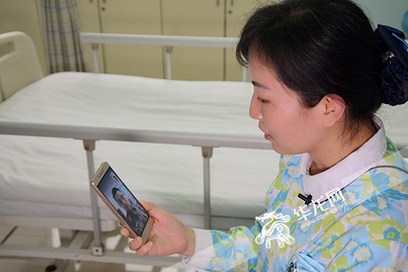 杨丽与仍在岗位上值班坚守的丈夫视频连线。 院方供图华龙网发