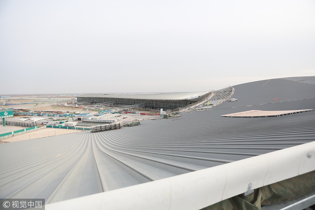 2017年12月29日,主航站楼提前两天实现功能性封顶封围。