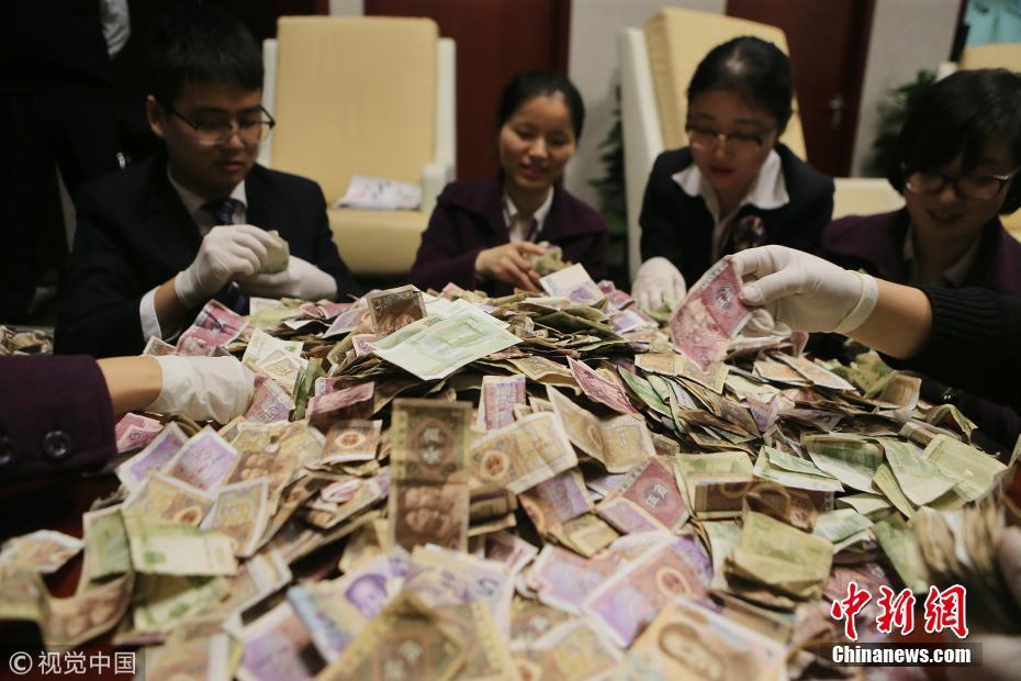 募捐箱每隔两年左右清点一次,上一次清点,是在2015年末。“我估计得有将近2万元吧,”光大银行经开区支行副行长李颖目测后笑称,平时的工作中,见过不少客户,拿着大量零钱存银行,但数量这么多的零钱,还是第一次遇到,“这些钱重40多公斤,清点的工作量将非常大。”此外,因为零钱的面额太小,无法用点钞机,必须人工一张一张清点。下午3点半,清点工作开始,10多名工作人员席地而坐。党运摄 图片来源:视觉中国