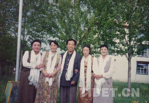 图为大学期间,泽仁永宗(右二)和同学们与藏医药专家在学校留影。图片由泽仁永宗提供