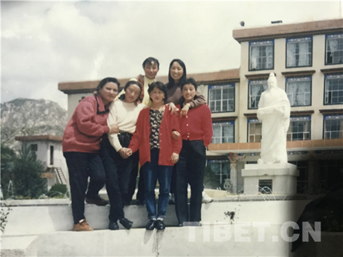 图为正值青春年华的泽仁永宗(前排左二)和大学同学在学校留影。图片由泽仁永宗提供。