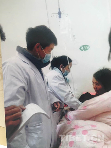 图为泽仁永宗和同事诊治病人 图片由泽仁永宗提供