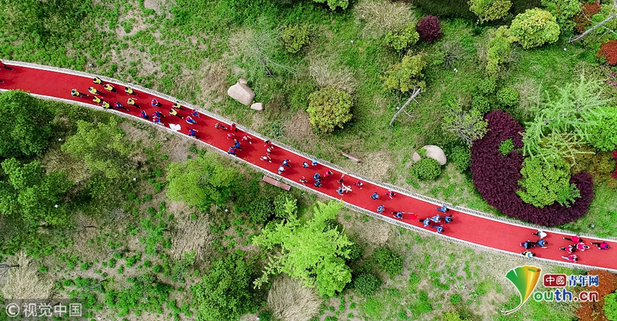 2018年4月21日上午,江苏扬州,江都春季健步走活动在春江湖公园举行,数百名各界市民代表参加活动。