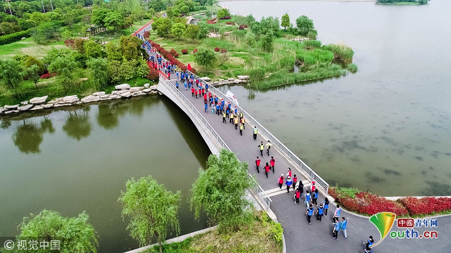 江苏扬州举办春季健步走活动 数百职工环湖健走