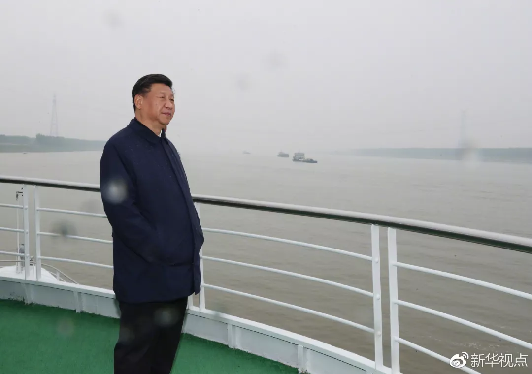 25日下午,习近平来到湖南岳阳,考察了位于长江沿岸的岳阳市君山华龙码头。