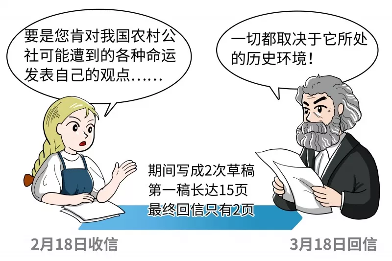 1881年2月18日前后,一封信漂洋过海地来到了马克思的书桌上。写信的人叫查苏利奇,是俄国一位女革命家。几年过去了,俄国国内关于俄国去哪儿的问题还争论不休,她想听听本尊能不能给一个确定的答案,俄国社会发展道路究竟会怎样?信中,查苏利奇的言辞流露出对马克思“小迷妹”般的无限崇敬:“请您理解,……,要是您肯对我国农村公社可能遭到的各种命运发表自己的观点,要是您肯对那种认为由于历史的必然性,世界上所有国家都必须经过资本主义生产的一切阶段这种理论阐明自己的看法,那么您会给我们多大的帮助啊”。
