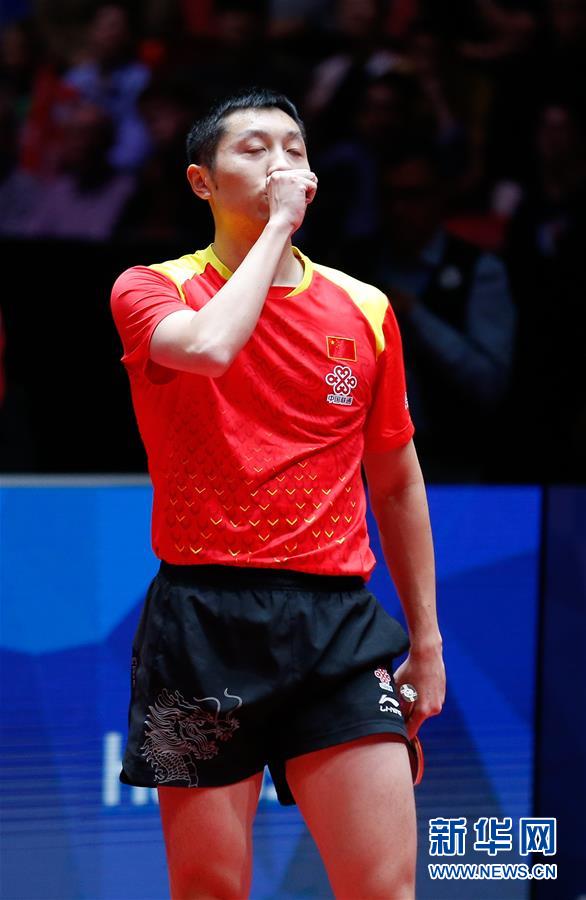 5月6日,许昕在比赛后庆祝。许昕以3比1战胜德国队选手弗兰齐斯卡。新华社记者叶平凡摄