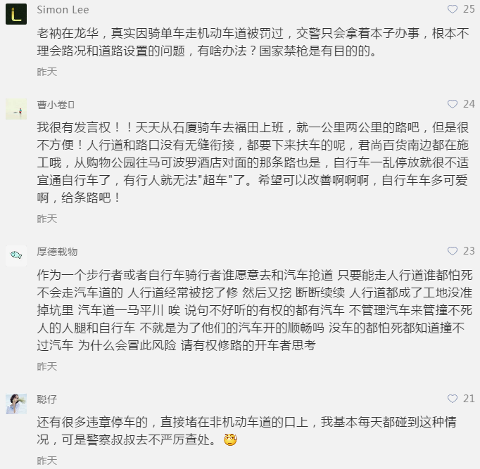 网友指出非机动车道设计不合理的地方