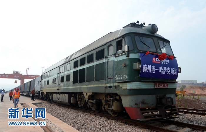 为世界和平发展注入强劲正能量——记中国担任上海合作组织轮值主席国一年间在江西省赣州市南康区赣州港,“赣州港至哈萨克斯坦”中欧班列等待发车(2017年7月27日摄)。新华社记者彭昭之 摄