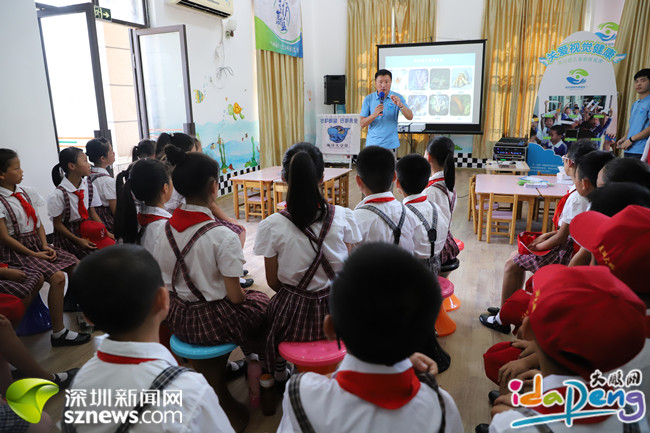 “小朋友,我想问大家,我们能带走沙滩上的贝壳吗?”“不可以。”来自大鹏中心小学的学生们异口同声地回答。正式揭牌后,儿童友好服务站迎来了它的第一批客人——来自大鹏中心小学的40余名学生,他们接受了“守护蔚蓝”第二课堂教育,由广东海洋大学深圳研究院海洋大学堂讲师们为孩子讲解了海洋环保知识。