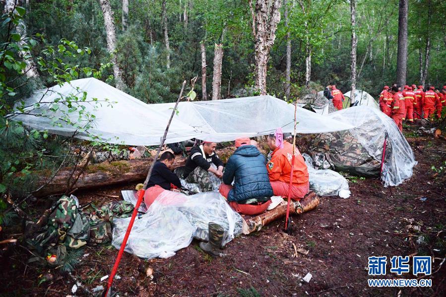 在黑龙江大兴安岭呼中火场,扑火队员在林间休息(6月6日摄)。新华社记者王凯摄