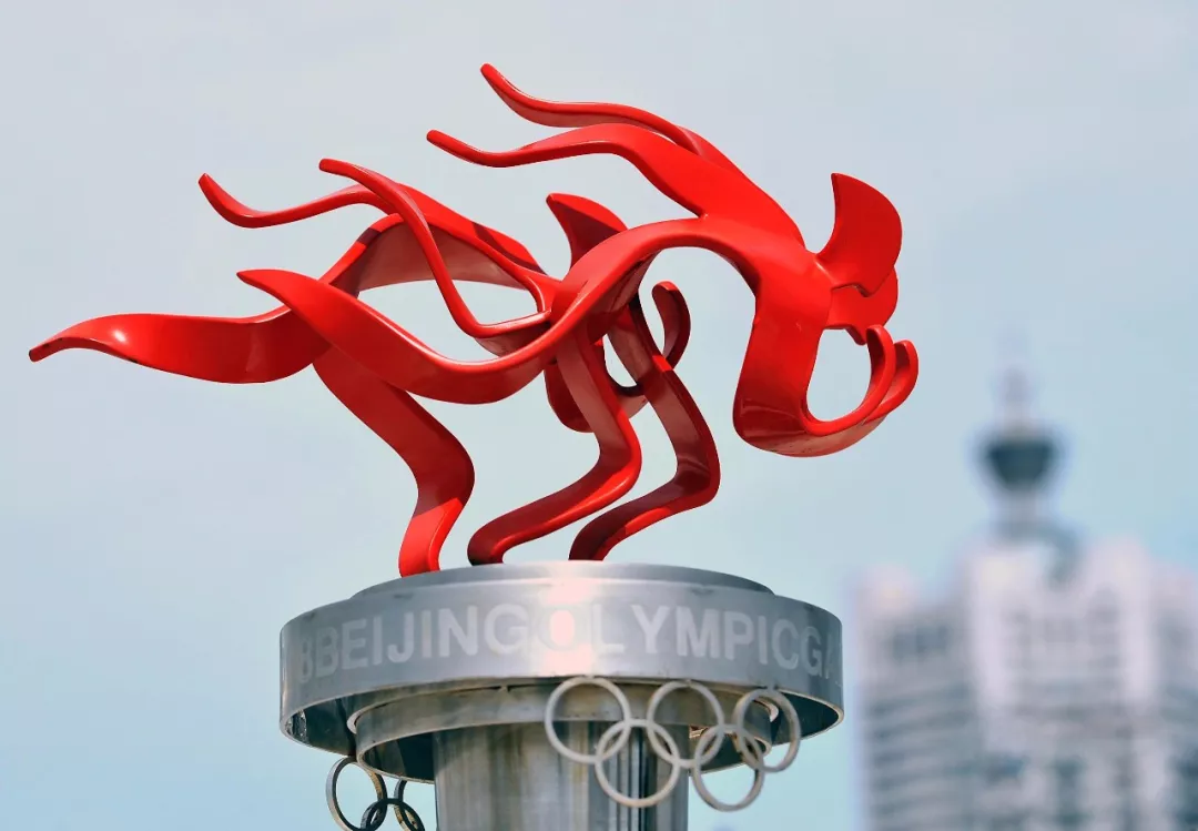 2008年8月4日,青岛奥林匹克主题公园内的雕塑作品《永恒的圣火》。 新华社记者 王颂 摄
