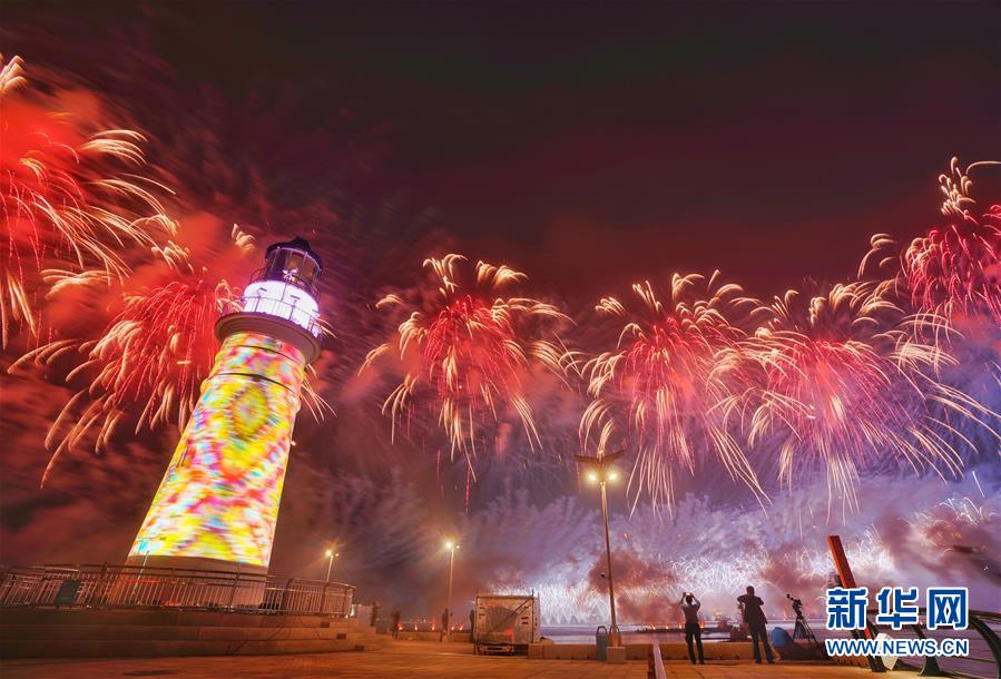 6月9日至10日,上海合作组织青岛峰会在山东青岛召开。这是9日晚在青岛举行的《有朋自远方来》灯光焰火艺术表演。 新华社发(王南 摄)