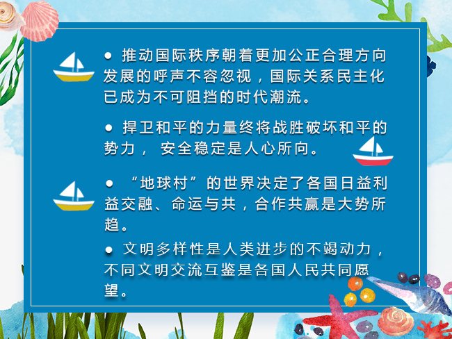 “面对世界大发展大变革大调整的新形势,为更好推进人类文明进步事业,我们必须登高望远,正确认识和把握世界大势和时代潮流。”习近平主席在讲话中发出响亮的“中国声音”: