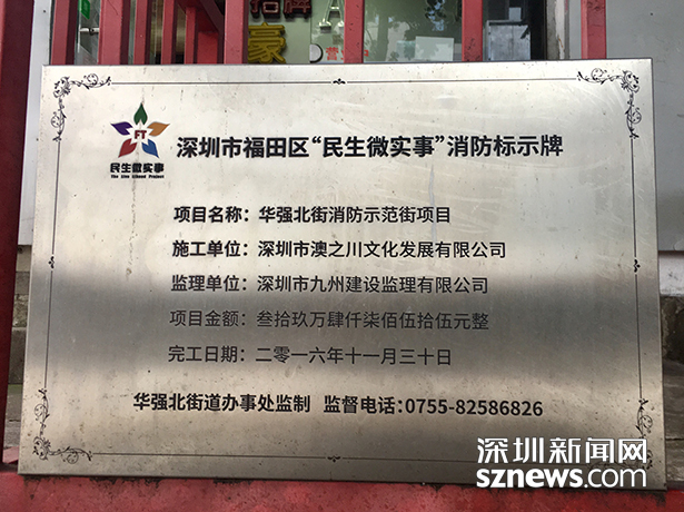 记者在一块牌匾上看到了责任部门、完工日期,所属项目等详细信息,据此,记者联系到华强北街道办。