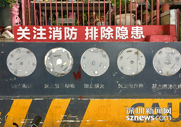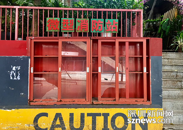 记者来到华强北街道消防示范街时,发现这里的微型消防站的境况似乎比帖子照片更加严重,帖子里还能看到的消防知识牌已不见踪影。