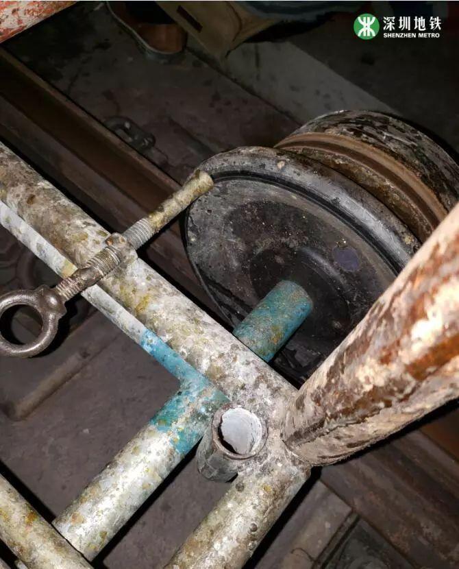 其实这是地铁“脚手架车”的刹车装置。那么问题来了,什么是脚手架车?