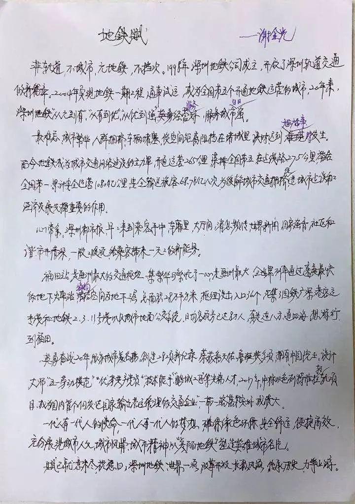 您与妻子为纪念深圳地铁20周年,特意创作两篇文章《地铁赋》及《地铁服务好,城市日日强》。
