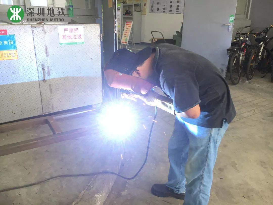 横岗车辆段架大修部,时常需要电焊工完成各种各样工作所需的工件。这时,我们的“闪电侠”便会出动,穿戴好劳保用品,拿出电焊机,安装好电缆线,连接电源,对所需物品进行简单拼接,就可以开始电焊啦!当听到 “Biubiubiubiu”声音的时候,我们的眼睛是不可以看向电焊区域的哦,因为这种光是电焊所产生的 “弧光”,是带蓝色光芒。其主要包括了红外线、紫外线和可见光组成,可对皮肤造成伤害,产生脱皮,灼痛现象。所以为了保护好自己,千万别耍酷去偷看哦。