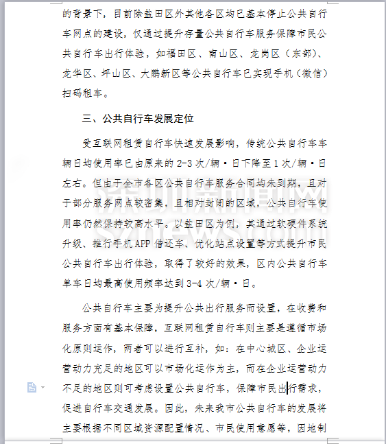 深圳市交委称,目前各区均将公共自行车纳入民生工程,采用购买服务的方式将公共自行车建设及运营委托公共自行车运营企业,并给予其一定资源补偿或补贴。由于全市各区公共自行车服务合同均未到期,在公共自行车使用率大幅下降的背景下,目前除盐田区外其他各区均已基本停止公共自行车网点的建设,仅通过提升存量公共自行车服务保障市民公共自行车出行体验,如福田区、南山区、龙岗区(东部)、龙华区、坪山区、大鹏新区等公共自行车已实现手机(微信)扫码租车。