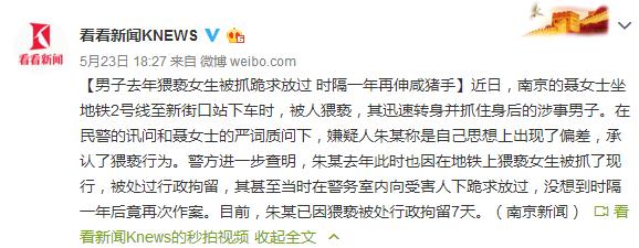 近日,在国内某地铁站车厢内,就有这样一个猥琐男被抓了现行。